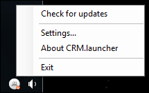 As long as CRM.launcher is running, an icon is displayed in the system tray. Right- or double-clicking on the icon opens the context menu.