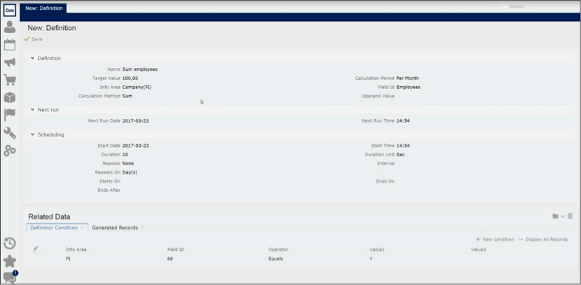 - Select the Definition Condition tab in the Related Data section.
