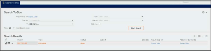 - Select the type of To-Do from the Type drop-down list. In this case it is Calculate.