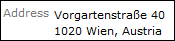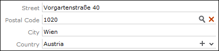 In some views, such as the tab view or the mini details view, your administrator can combine multiple fields' contents in a single field. For example, an address field can be defined that contains the contents of the Street, Postal Code, City and Country fields: