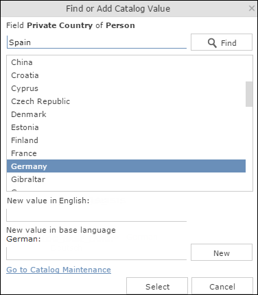 (Add/Find Catalog Values). - Repeat the process if you want to add additional entries. The number of entries you can still add is displayed in light gray.