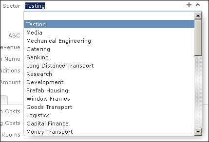 to open the drop-down list. - Select the option you want to enter in the field. Alternatively you can navigate in the drop-down list by typing the first character (e.g. typing 'F' highlights the "Finland" entry). If you select a value, the drop-down list is closed.