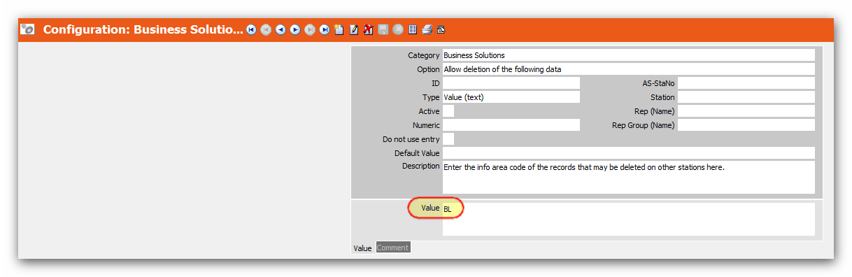 Therefore it is possible to delete records of the “BL” info area in customer projects.