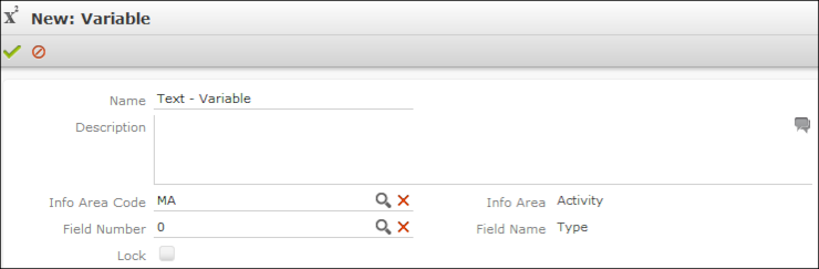 - Enable the Lock check box to lock the variable and prevent it from being used.
