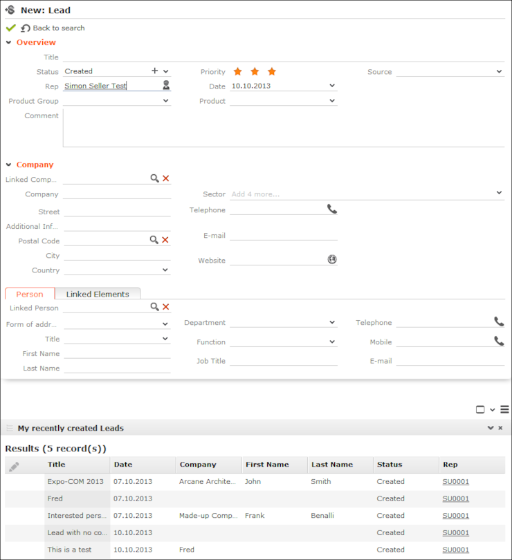 for the title and campaign to quickly enter leads, e.g. at a trade fair. You cannot