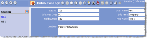 Use the Distribution Logic info area to define conditions used to output records to a specific station.