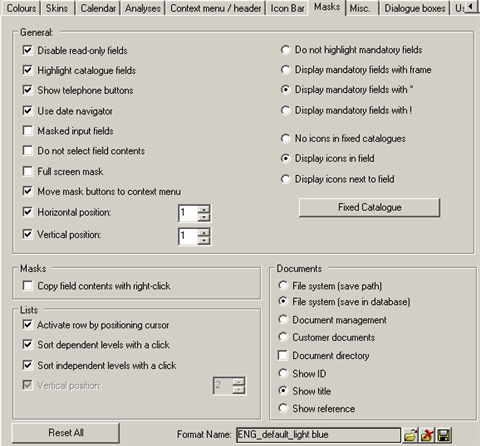 Use the Masks tab to configure global settings for masks, lists and document fields:
