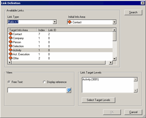 the linked record is opened in this level.Note: If no level exists for the selected target info area, you need to define a new level, see Defining New Levels.