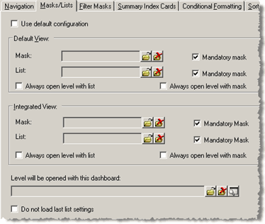 Mandatory mask: Enable the Mandatory mask check box to determine that the user cannot load another mask. If the check box is disabled, the mask is defined as the original mask. The original mask is loaded the first time a level is opened, and can be reloaded at any time by selecting View > Original Mask from the menu.