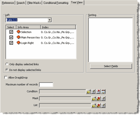 - Determine the Maximum number of records in this info area to be displayed in the tree view. If you leave the field empty, all records are displayed.