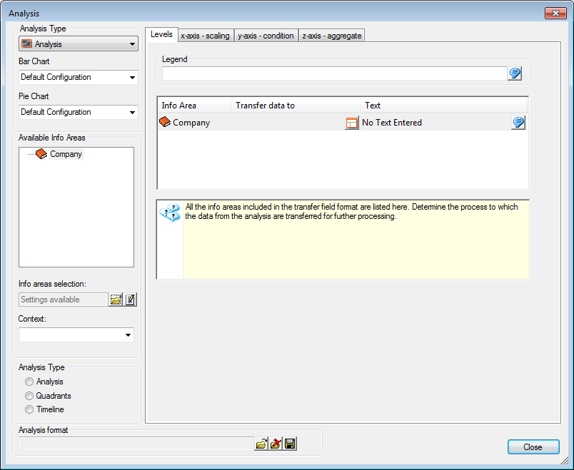 - Enter a Legend and Text to be displayed in the analysis.