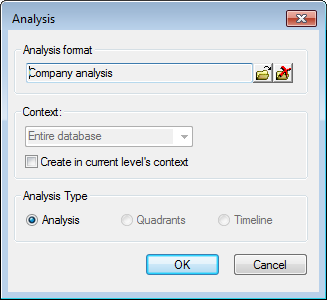 If you did not previously specify a context or analysis type, you can select one now.