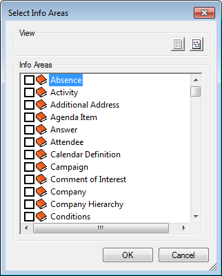 - Select the info area and click OK. The search mask is displayed for the selected info area.