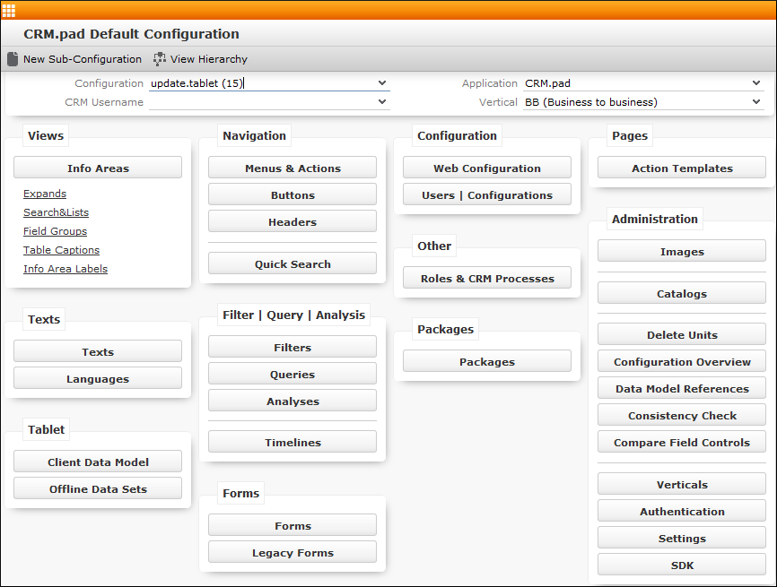 CRM.padfrom the Application drop-down list. The default configuration calledupdate.tabletis automatically selected from the Configuration drop-down list: