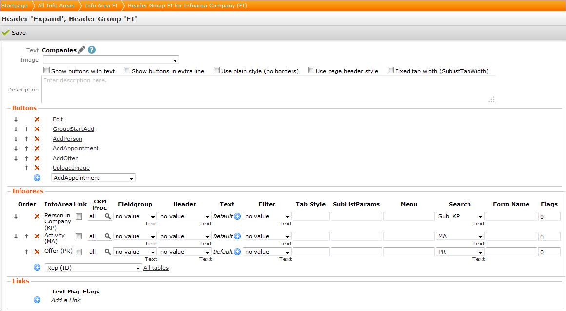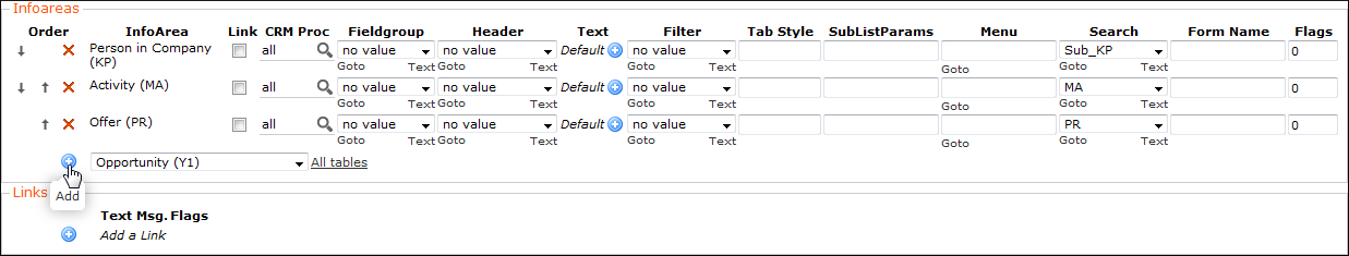 - Infoareas, see Adding Info Areas (Tabs).