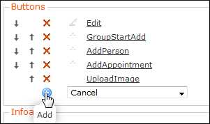 To define which functions are available in the application add the desired buttons: