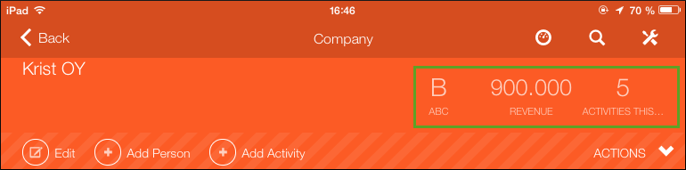 The related data is displayed in CRM.pad as follows: