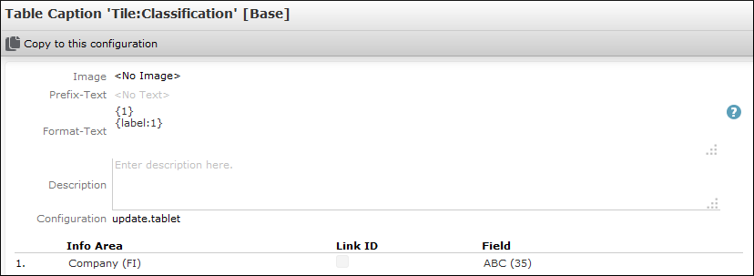 - Add a table caption specifying the fields that are displayed in the tile, e.g. the