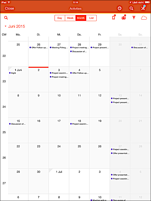 ) and select the desired date. Tap on Today to switch to the current date. The current date is marked with an orange bar.