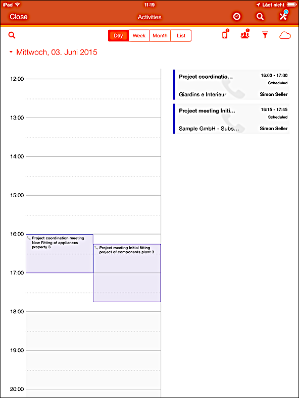 Your activities are displayed in calendar view on the left, on the right you can see the most important information for the activities.