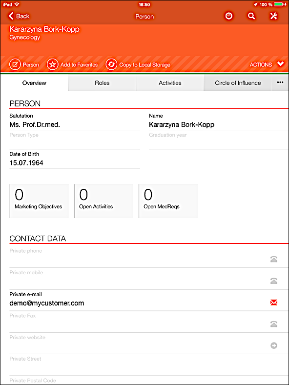 - Data in tabs: Click on the desired tab to list available related records. Then click on the desired record to view its details.