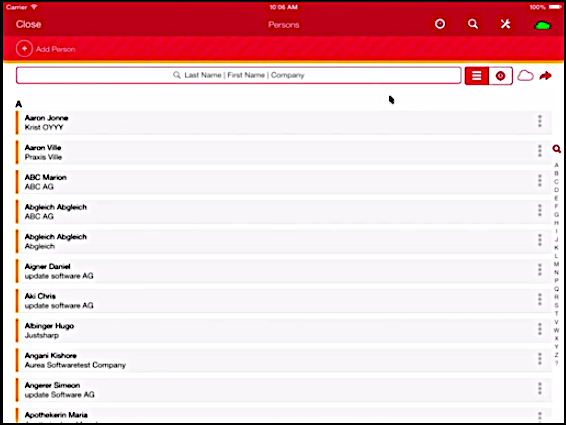 Note: Your administrator determines which fields are included in the search.Data is searched for as you type. Hits are listed below the Search field