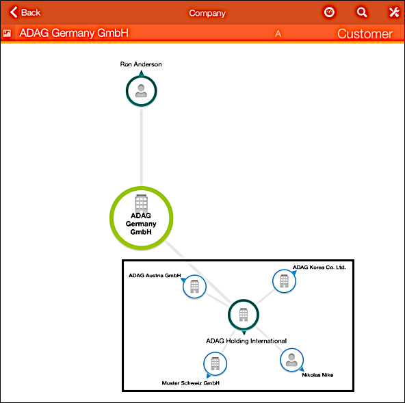 - Double-tap on a related record to display its details view.Note: Your administrator can define that instead of displaying the details view this record and its relationships (if they exist) are also displayed in the circle of influence.